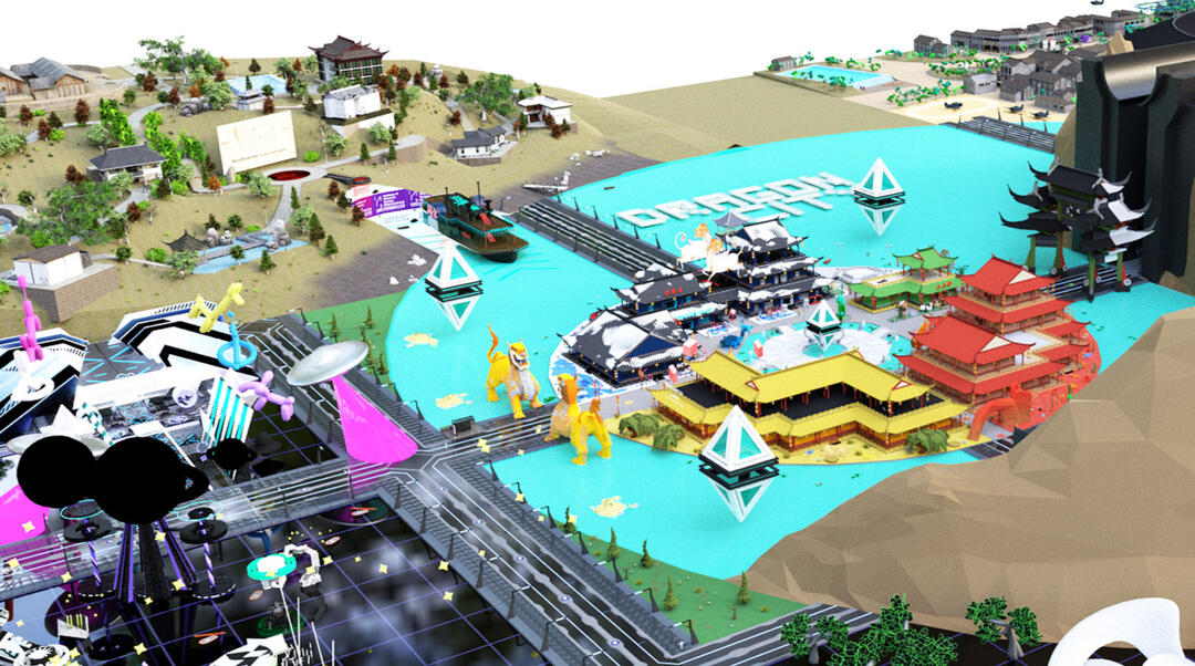 Powered by Metaverse Labs, Dragon City thrives as a vibrant district in Decentraland, it stands as a significant cultural hub to celebrate and preserve global traditional cultures while also delving into innovative avenues for the future of human society. Covering an expansive area of approximately 1.66 million square meters, Dragon City is a meticulously crafted environment featuring a diverse range of scene designs inspired by various cultures. It also serves as a prominent venue for hosting numerous influential and grand-scale events.